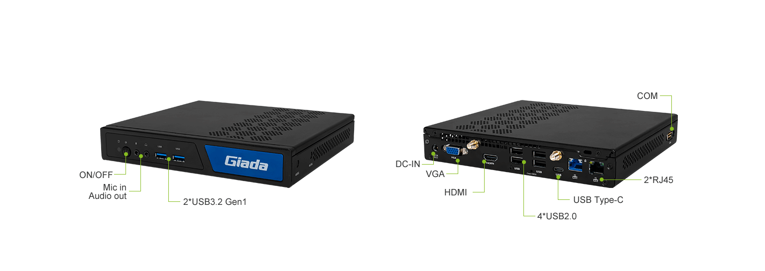 With Intel® UHD Graphics 770, 750 or 730, BQ614 supports 3 displays. Two of the displays are an HDMI 2.0a (4096x2304@60Hz) a DisplayPort 1.4 (7680x4320 @60Hz), or an optional VGA port (2048 x 1536@60Hz). Besides, its USB type-C port provides a DP1.4 signal supporting up to 8K resolution.