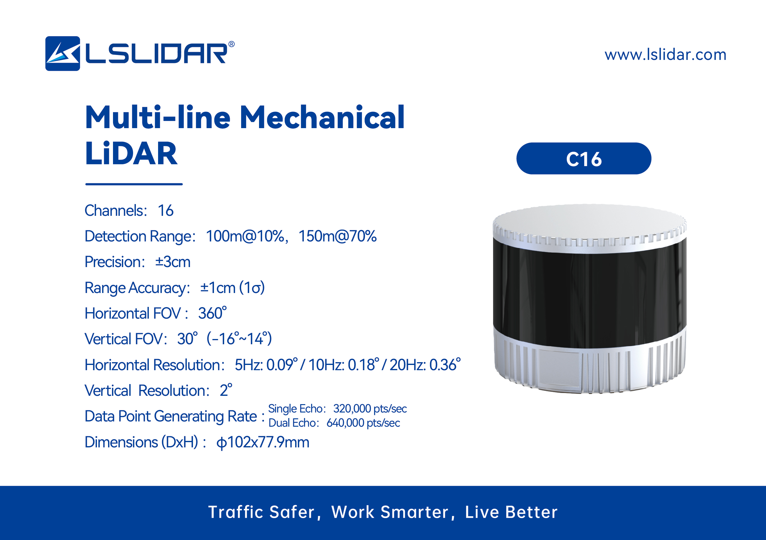 Realizes 360° three-dimensional fast scanning with dense 32/16 beam laser Vertical FOV 31°(-16°-15°) / 30°(-16°~14°)