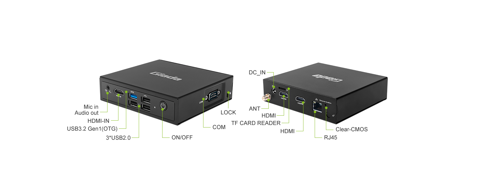 The ultra-compact Android player adopts Dual-core Cortex-A72 and Quad-core Cortex-A53 processors. It supports onboard dual-channel LPDDR4 memory, eMMC5.1 storage, dual-band WiFi, and Bluetooth 4.2.