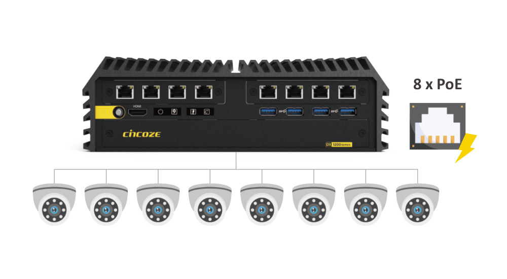 To improve the transfer rate of videos or large files, the DX-1200 supports up to four high-speed 10Gbps LAN ports. And for application environments that require multiple network connections, the DX-1200 supports up to 8× PoE, providing data and power through the same cable to reduce the difficulty of wiring.