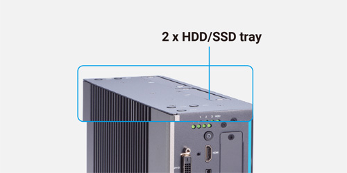 By supporting two 2.5" HDD/SSD and one optional M.2 Key M 2280 socket (PCIe x4 Gen4), the high-performance IPC960A delivers sufficient storage for massive data processing.